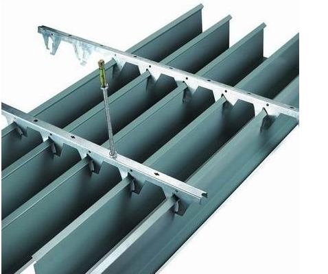 4.固定垂簾掛片【鋁掛片】:用通用吊件將卡式龍骨與輕鋼龍骨固定,卡式龍骨間相互平行并與輕鋼龍骨垂直,卡式龍骨間距≤1200mm