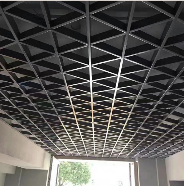 三角形鋁格柵天花吊頂組合起來是三角形的效果,而普通的鋁格柵天花是方格效果,鋁格柵天花吊頂,如果想要特別的裝飾效果,選擇三角格柵天花準(zhǔn)沒錯(cuò)。 板材三角格柵天花是一種沖壓成型加工得到的吊頂產(chǎn)品,因?yàn)殇X格柵產(chǎn)品的厚度一般偏薄,所以三角格柵天花的規(guī)格不會(huì)太大,同時(shí),板材三角格柵天花和普通的鋁格柵天花一樣,是卡扣組合系統(tǒng),安裝的時(shí)候通過主副骨卡扣組合起來再拼接滿足使用長(zhǎng)度。