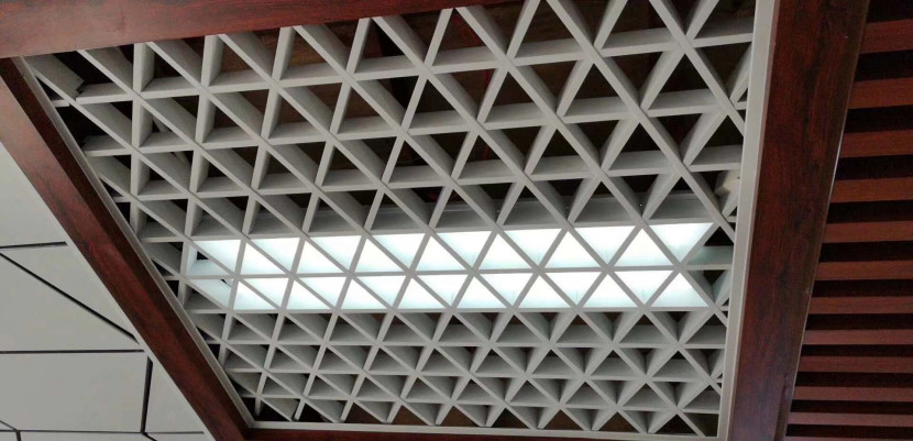 三角形鋁格柵天花吊頂組合起來是三角形的效果,而普通的鋁格柵天花是方格效果,格柵天花吊頂,如果想要特別的裝飾效果,那選擇三角格柵天花準(zhǔn)沒錯。 板材三角格柵天花是一種沖壓成型加工得到的吊頂產(chǎn)品,因為格柵產(chǎn)品的厚度一般偏薄,所以三角格柵天花的規(guī)格不會太大,同時,板材三角格柵天花和普通的鋁格柵天花一樣,是卡扣組合系統(tǒng),安裝的時候通過主副骨卡扣組合起來再拼接滿足使用長度。